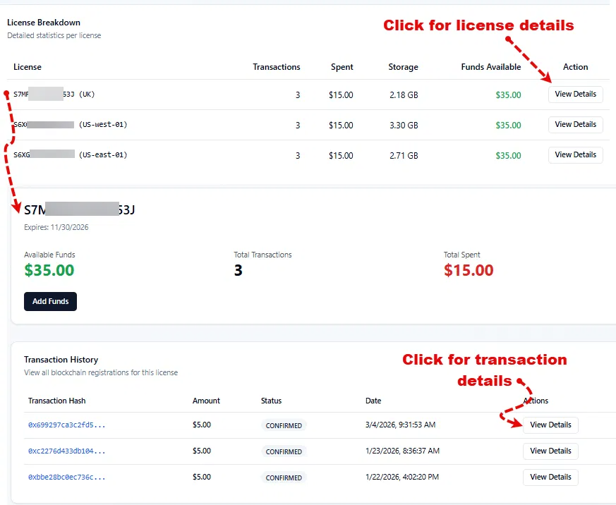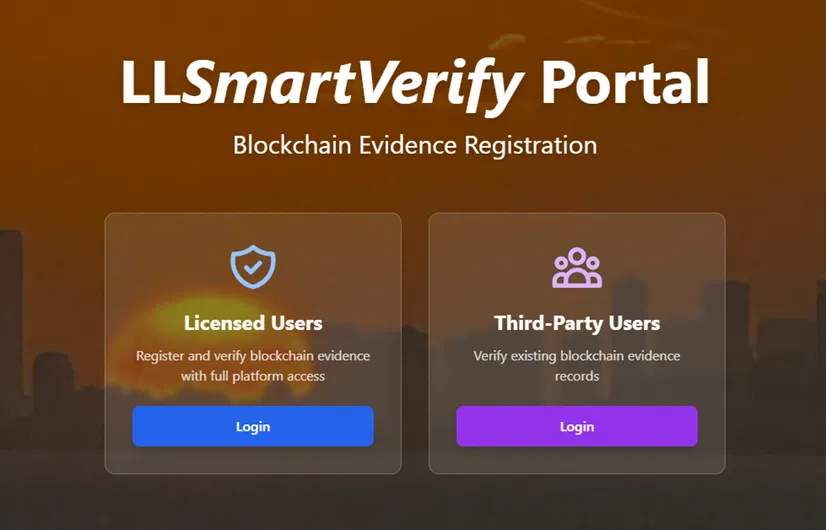 Licensed users (LLSmartVerify Standard user): authorized personnel who hold one or more active LLIMAGER licenses. Each licensed user can register and manage evidence records only within the scope of their specific license(s). Through the LLSmartVerify portal, users can review evidence and image acquisition metadata, verification status, blockchain transaction records, and the foundation event chain-of-custody entry for each piece of evidence covered by their license.